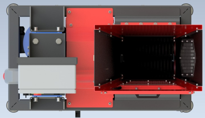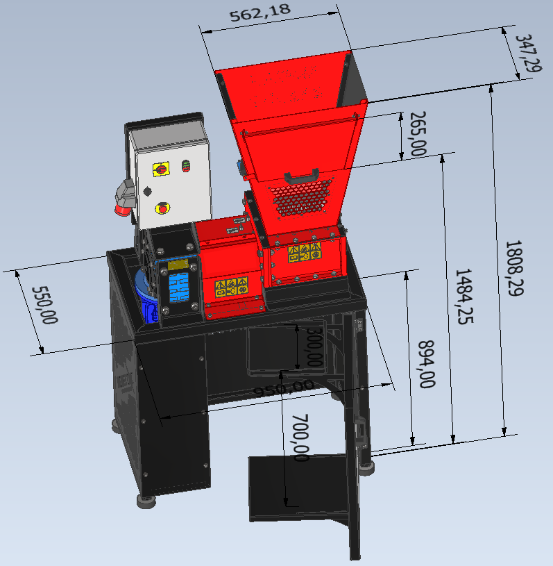 – Trémie 560 x 650 x 347 mm avec 2 accès (1 en façade + 1 par le dessus)