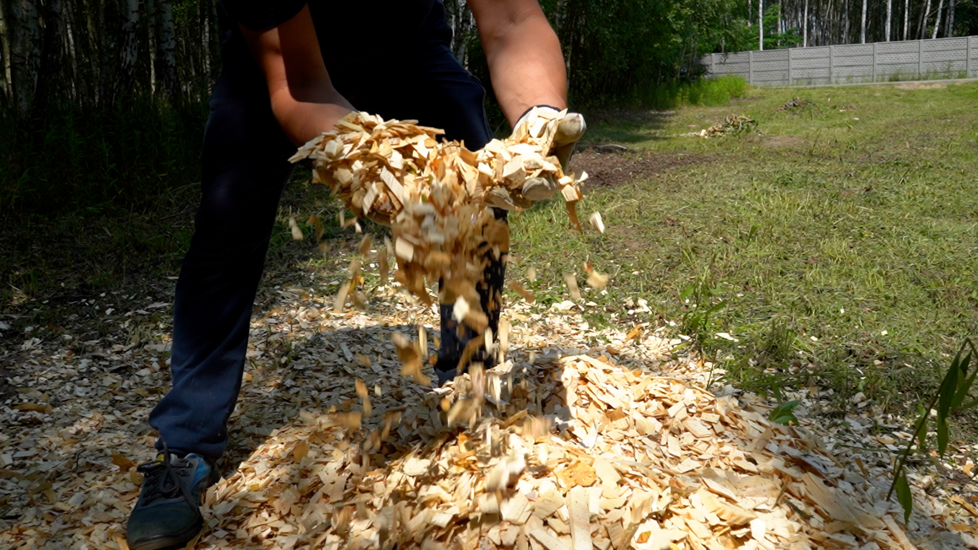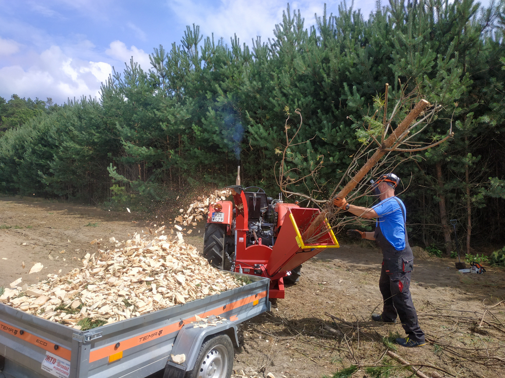 Les copeaux obtenus peuvent être utilisés comme combustible (adapté aux vis d’alimentation), comme compost ou comme litière pour arbustes.